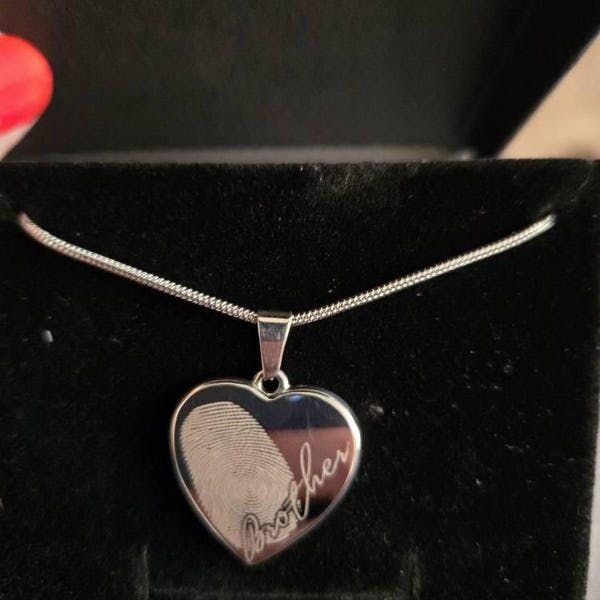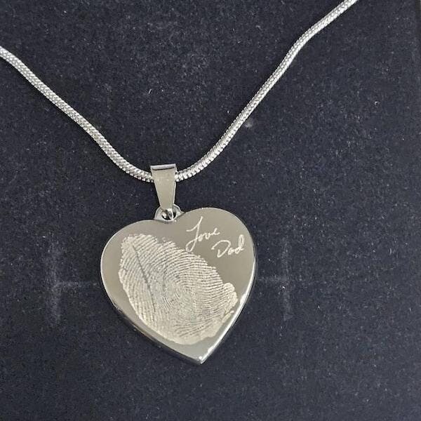 Personalized Fingerprint Heart Necklace: Engraved Handwriting, Gold or Silver